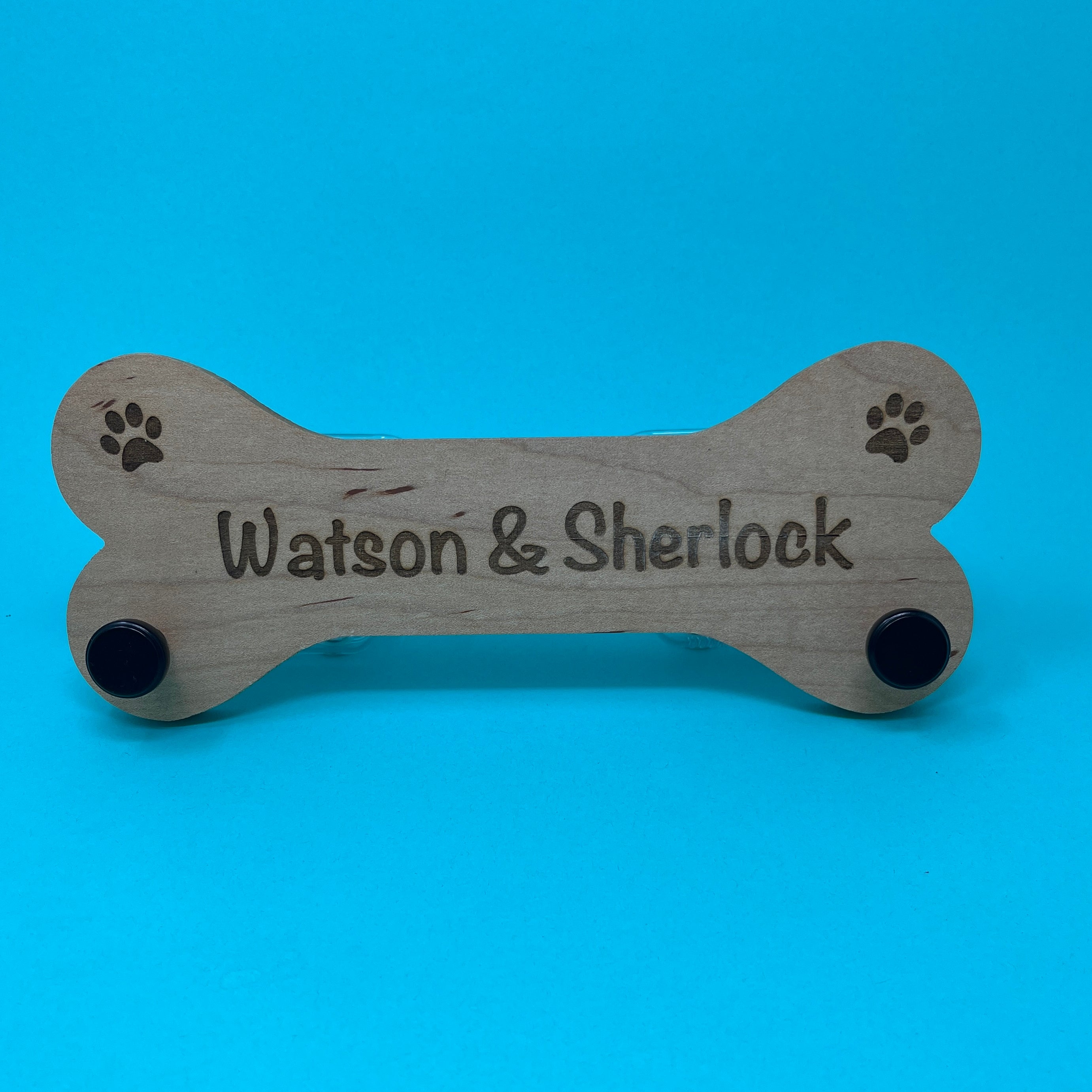 Keep your dog's leash organized with this handmade wooden hanging holder featuring two knobs. With engraved and painted letters the text is easily visible from even across the room!